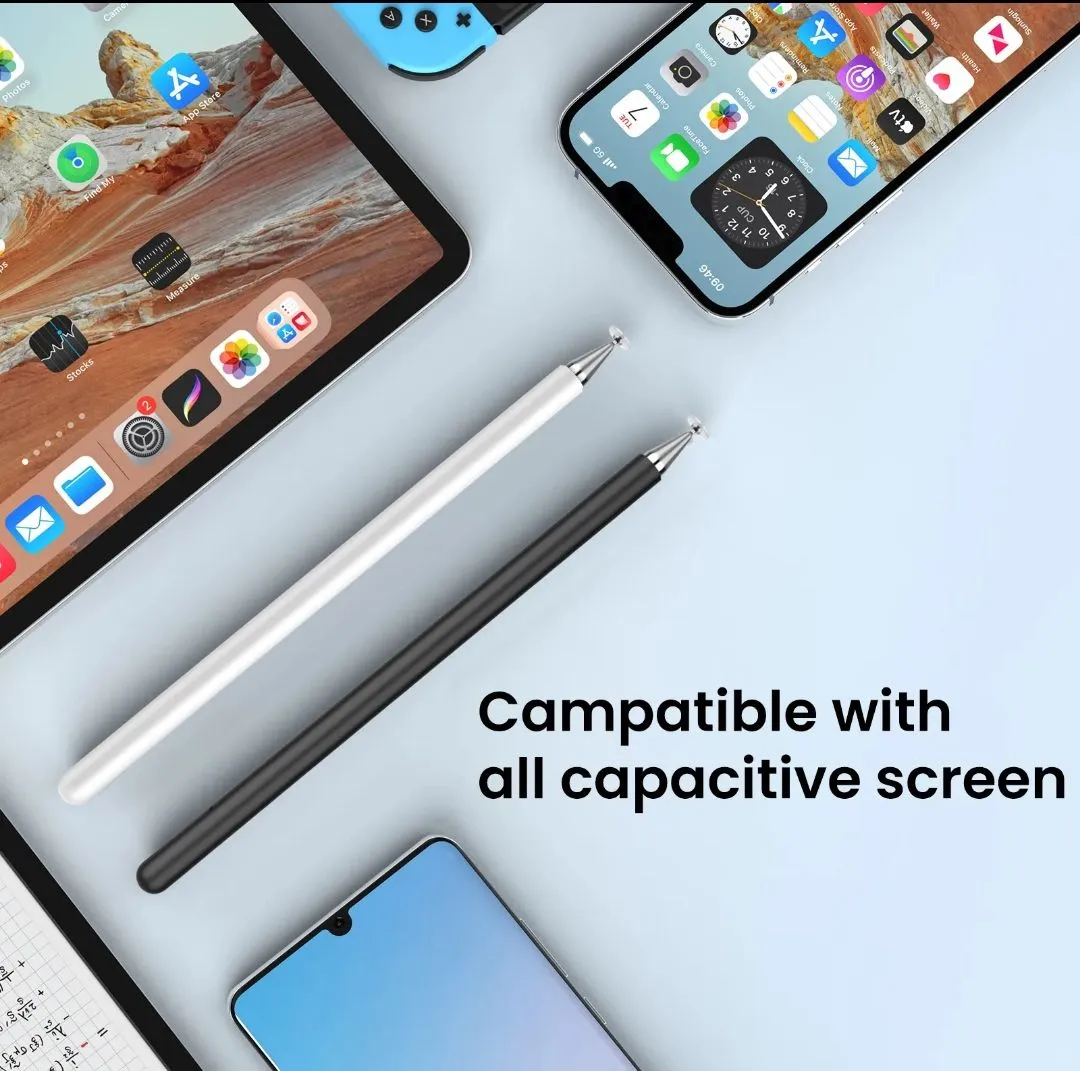 🎨 Ultimate Touch Experience for All Devices!🧲 Perfect for ALL Capacitive Touch Screens:Whether it’s your iPhone, iPad, Android phone, or tablet, this stylus is designed to work seamlessly with all your touch devices! 💻📱🔧 Features You’ll Love:✨ Magnetic Cap: Secure & stylish!✨ Bonus Perks:🧲2 Replaceable Pencil Disc Tips for long-lasting use.1 Fiber Tip for smooth precision.English Manual to guide you effortlessly.Cleaning Cloth to keep your stylus and devices spotless!📦 All Packaged in a Beautiful Gift Box!